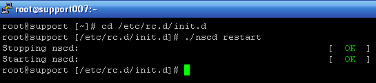 root@support [~]# cd /etc/rc.d/init.droot@support [/etc/rc.d/init.d]# ./nscd restart -