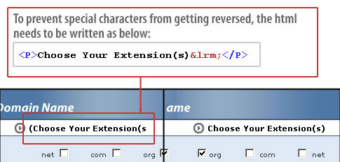 • The following are known display issues for Right to Left language support across browsers: